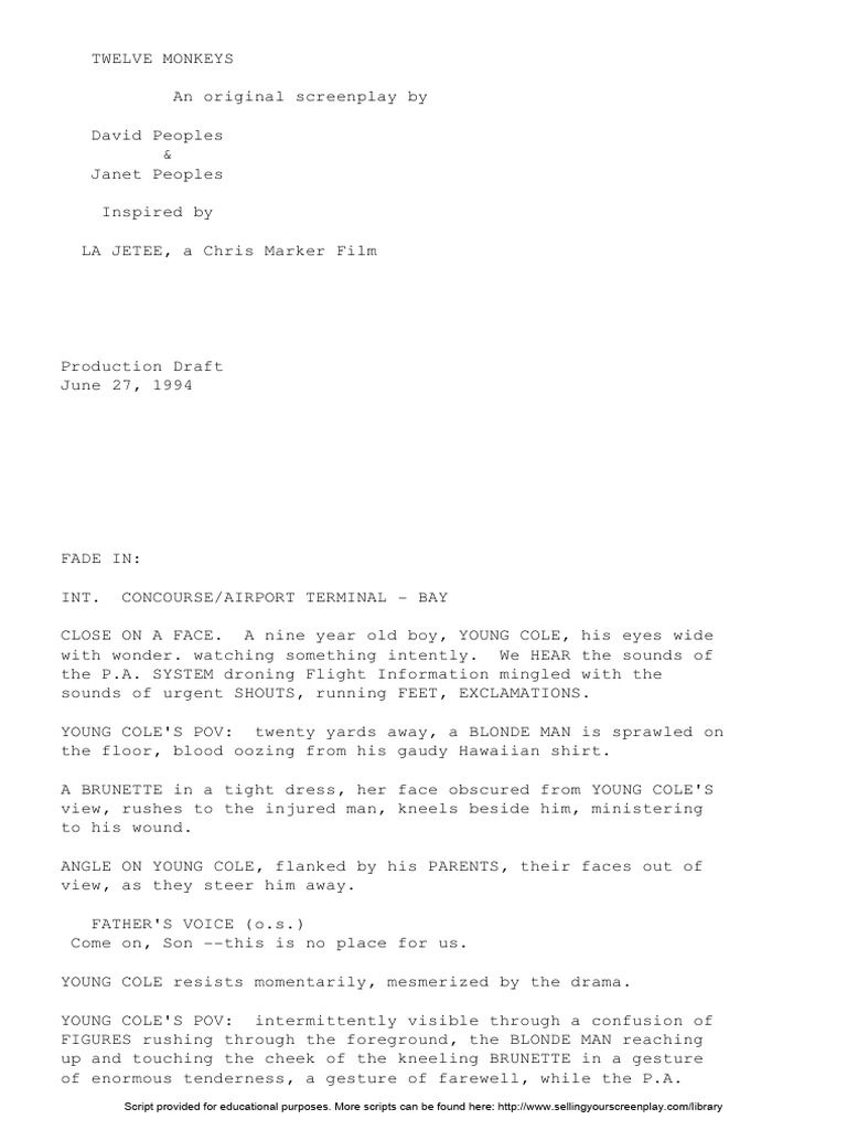 In the third act the main characters. Become a member to write your own review. Read 12 monkeys reviews from kids and teens on common sense media. All other private areas are covered. In the year 2035, convict james cole (bruce willis) volunteers reluctantly to be sent back in time.