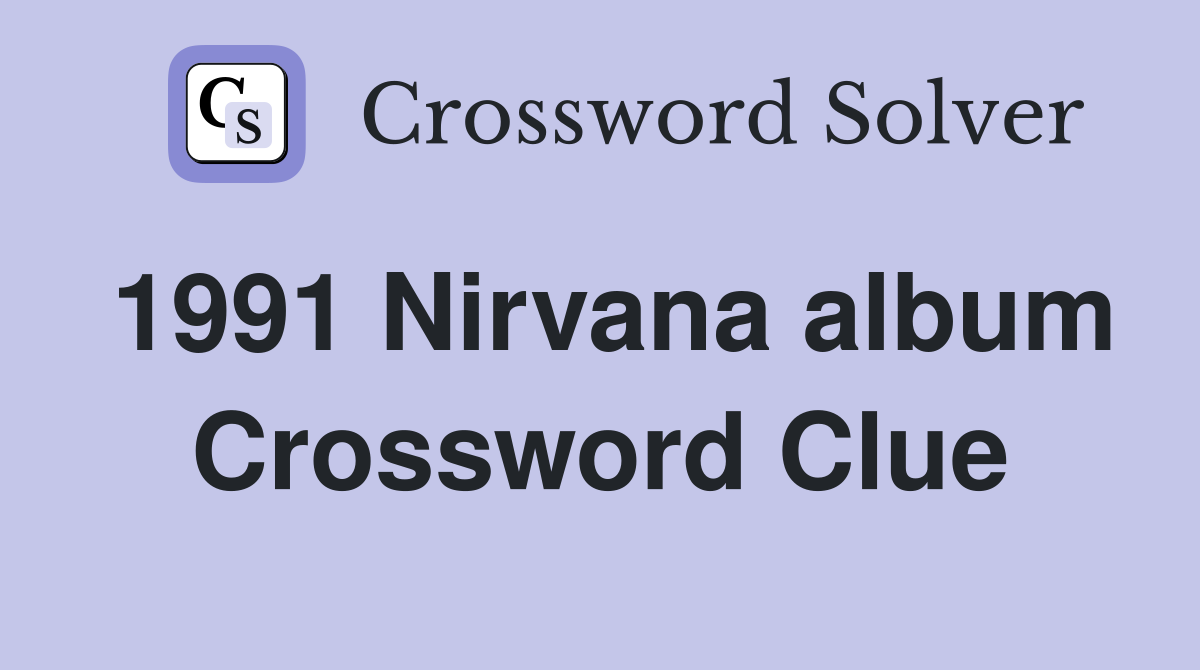 Answers for 1991 album by nirvana (9) crossword clue, 9 letters. I believe the answer is: Today's crossword puzzle clue is a quick one: The top solutions are determined by popularity, ratings.
