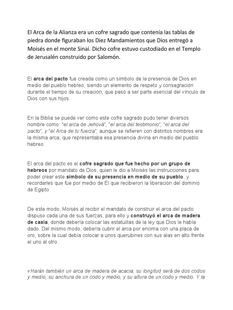 El Arca De La Alianza O Conocida Como El Arca Del Pacto Era Un Objeto