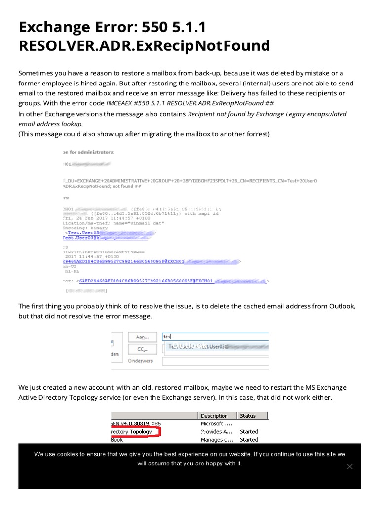 Exchange error 550 5 1 1 resolver adr exrecipnotfound by Inthecloud247
