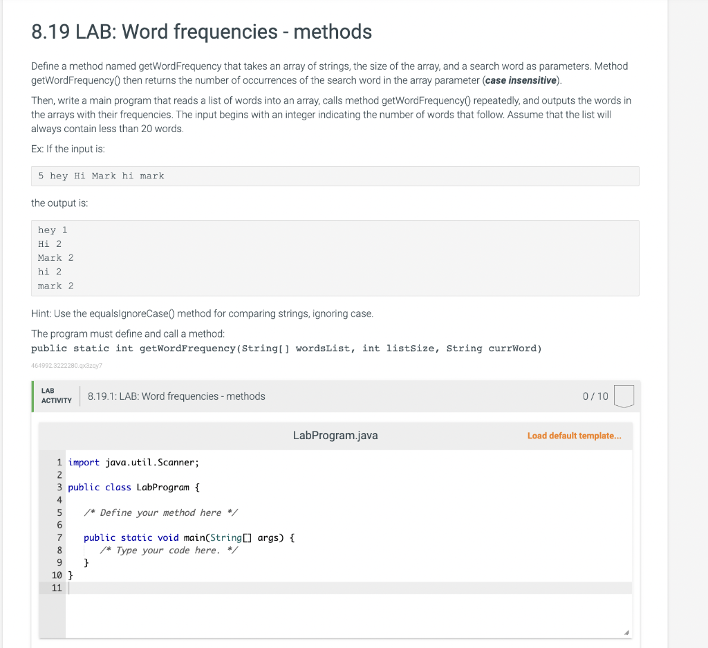Solved 8.19 LAB Word frequencies methods Define a method