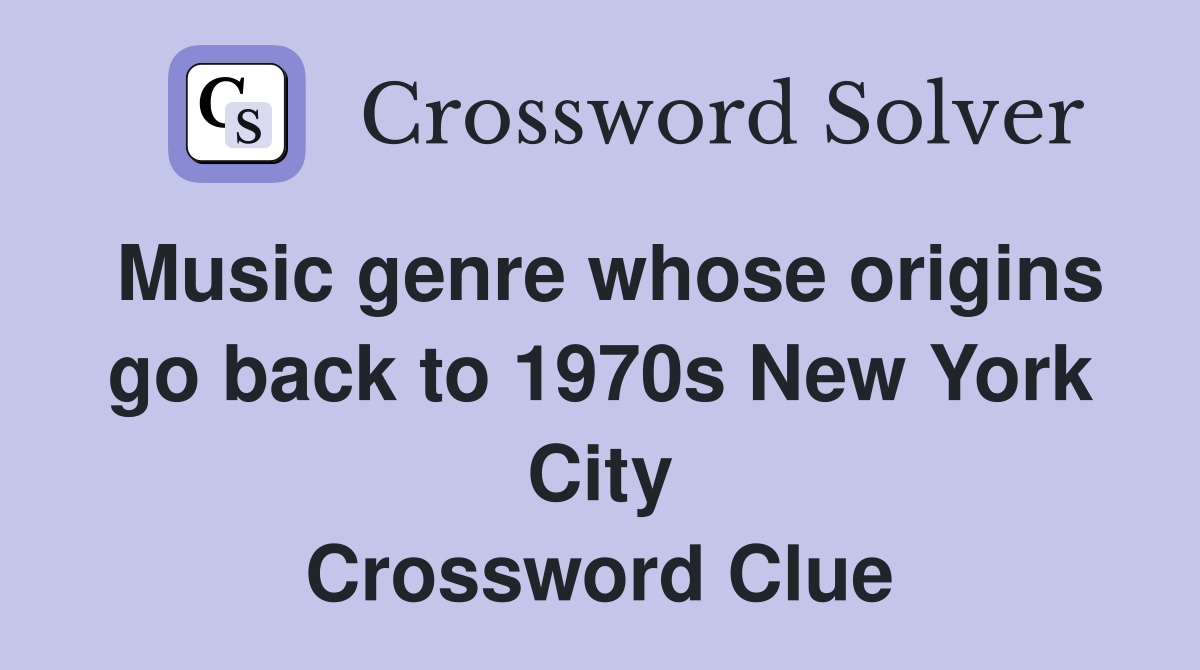 The crossword solver finds answers to classic. The crossword solver finds answers to classic. Here is the answer for the crossword clue '70s dance genre. The top solutions are determined by popularity, ratings and frequency of searches. We found 40 solutions for 1970s dance genre (5).
