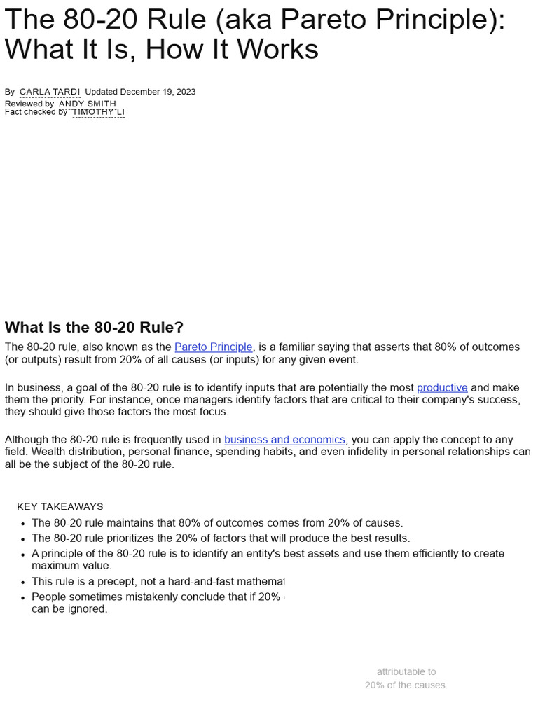 The 8020 Rule (Aka Pareto Principle) What It Is, How It Works in