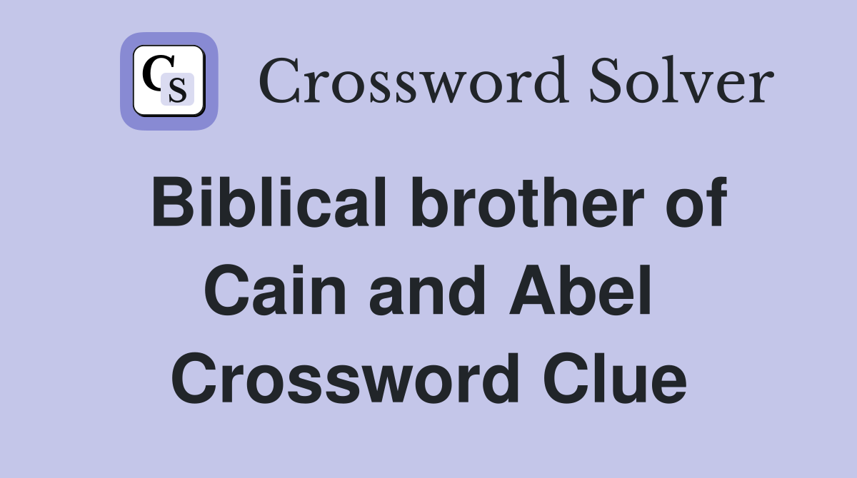 The crossword solver found 30 answers to abel's brother 4, 4 letters crossword clue. On this page you will find the abels brother crossword puzzle clue answers and solutions. The crossword solver found 30 answers to brother of abel (4), 4 letters crossword clue. If you're looking for help with the abel's biblical brother clue in daily themed crossword, we have the answer to assist you.