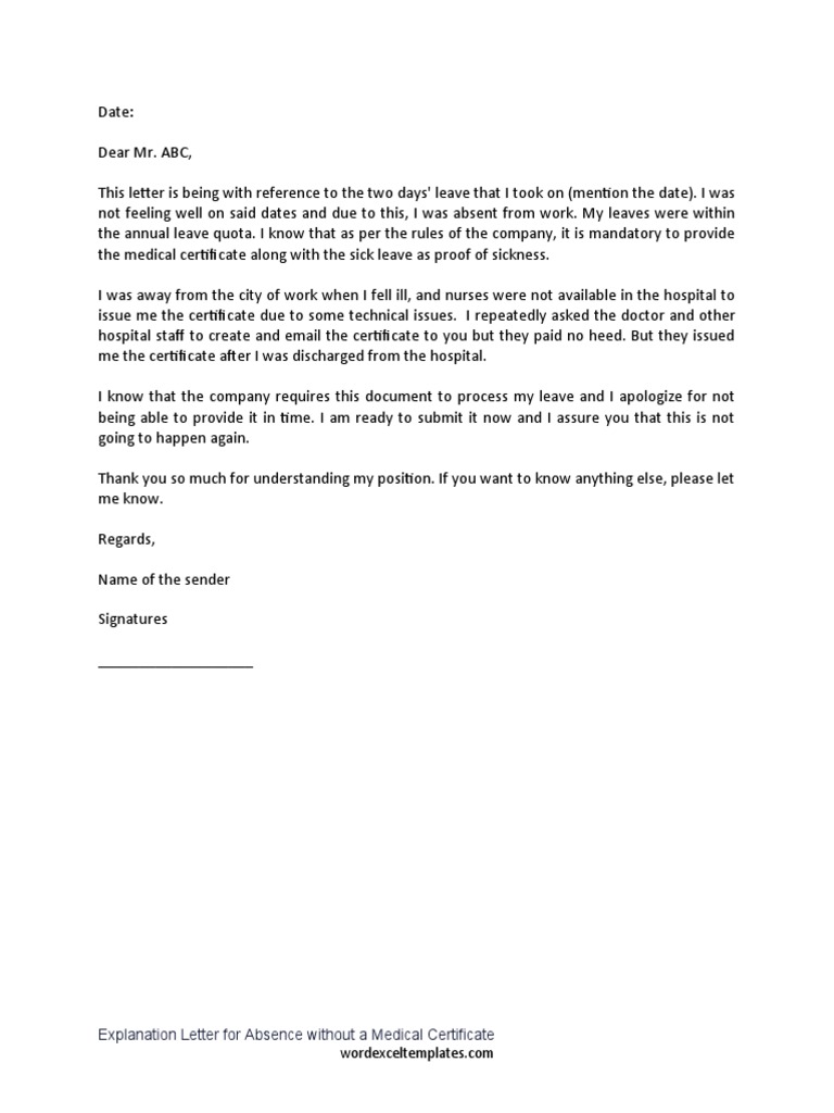 Explanation Letter For Absence Without A Medical Certificate 2 PDF