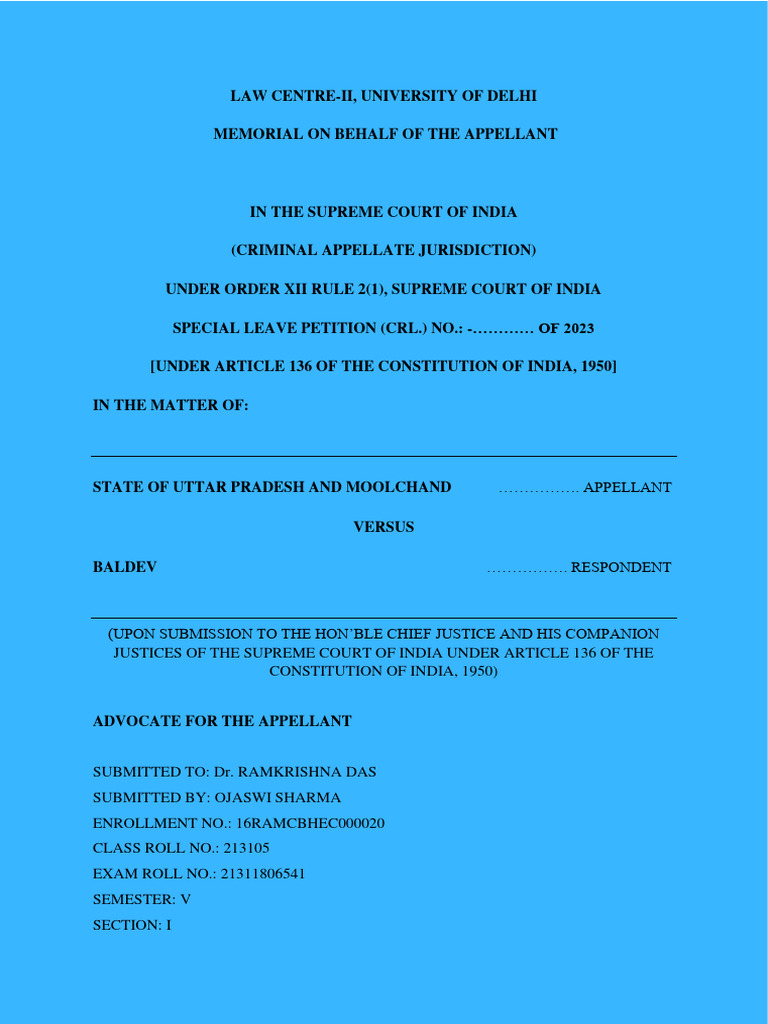 MEMORIAL ON BEHALF OF APPELANT (Ojaswi) Download Free PDF Burden Of