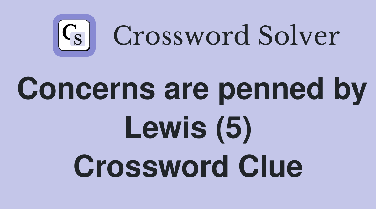 Concerns are penned by Lewis (5) Crossword Clue Answers Crossword