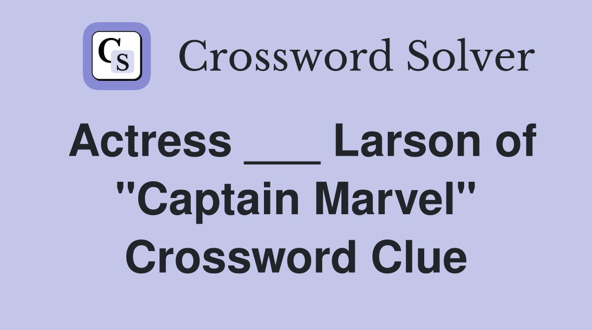 The crossword solver found 30 answers to actress larson of captain marvel, 4 letters crossword clue. We found the following answers for: Please find below the actress larson of “captain marvel” crossword clue answer and solution which is part of daily themed crossword march. All crossword answers with 4 letters for actress larson who plays captain marvel found in daily.