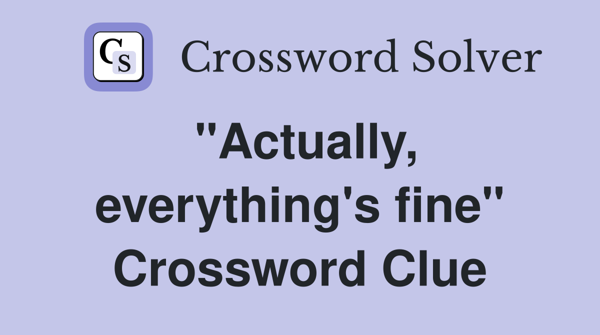 "Actually, everything's fine" Crossword Clue Answers Crossword Solver