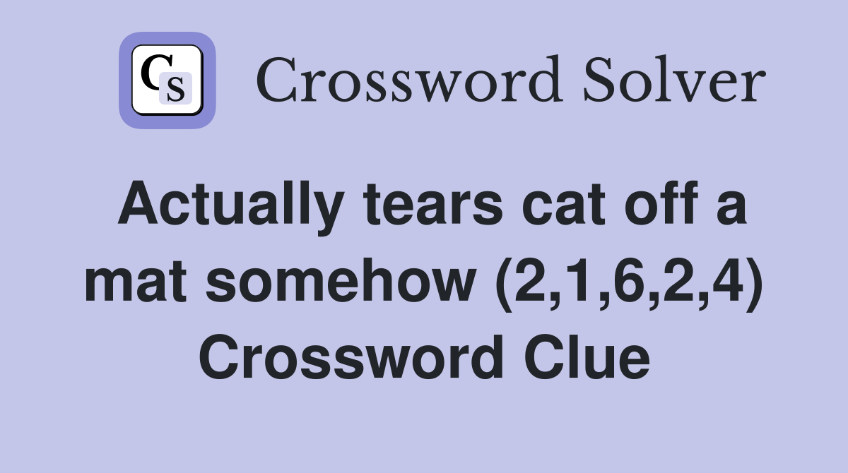 Actually tears cat off a mat somehow (2,1,6,2,4) Crossword Clue