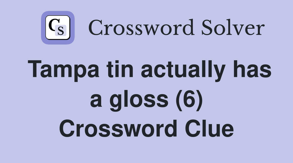 Tampa tin actually has a gloss (6) Crossword Clue Answers Crossword