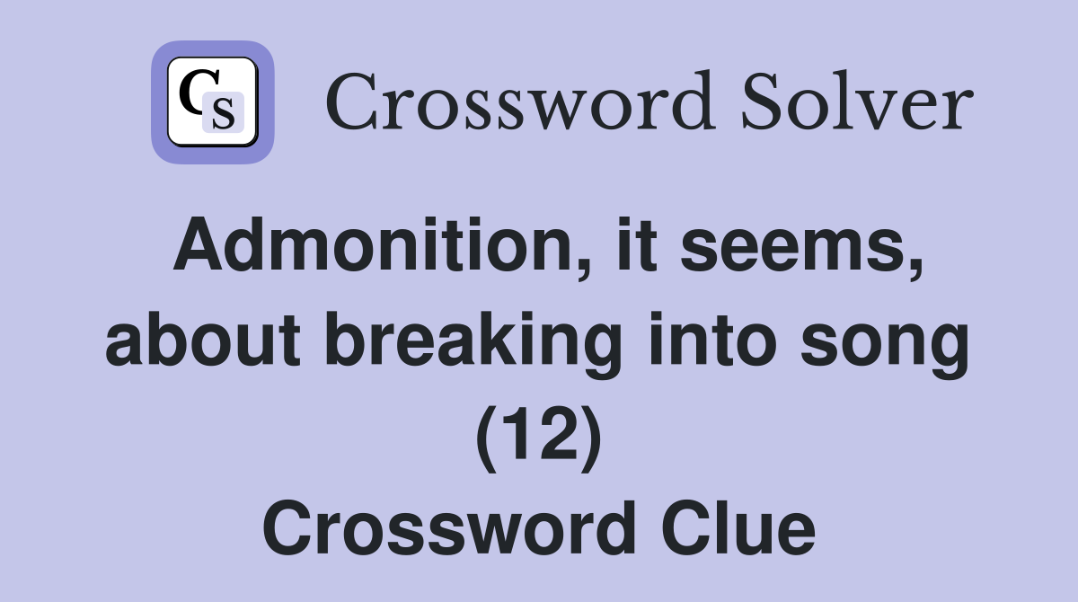 Admonition, it seems, about breaking into song (12) Crossword Clue