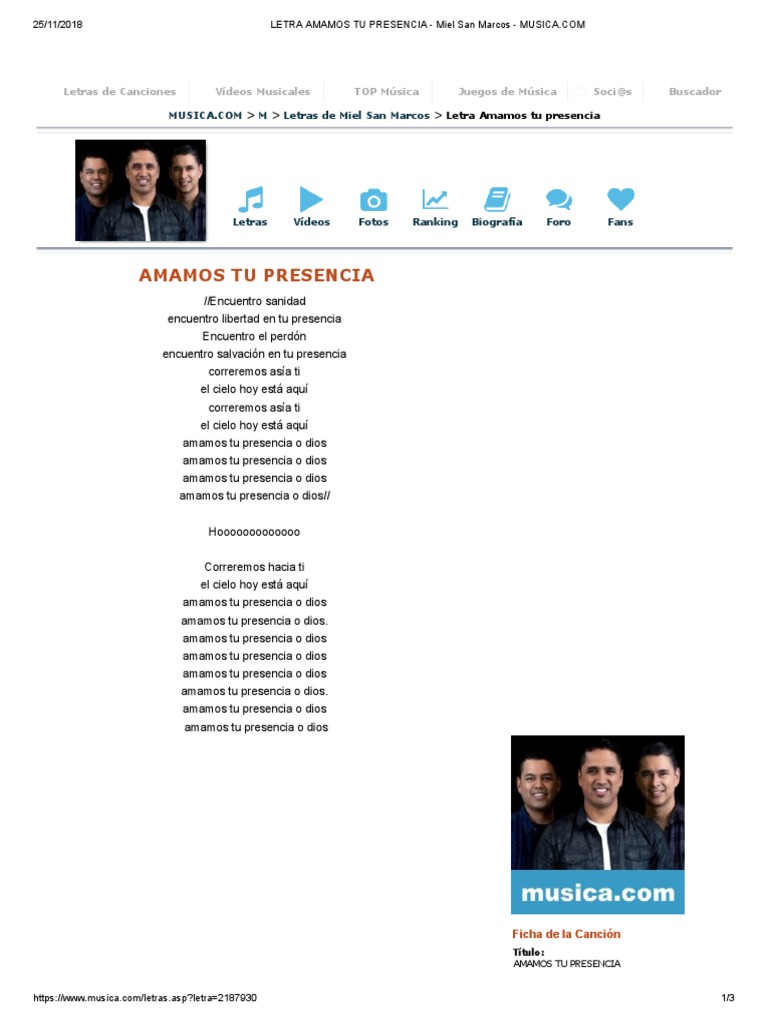 Letra Amamos Tu Presencia Miel San Marcos PDF Ocio
