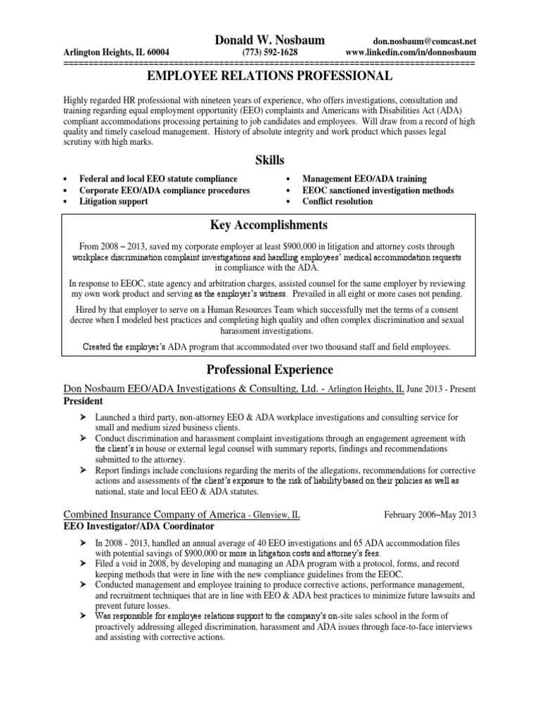 Employee Relations EEO Specialist Investigator in Chicago IL Resume