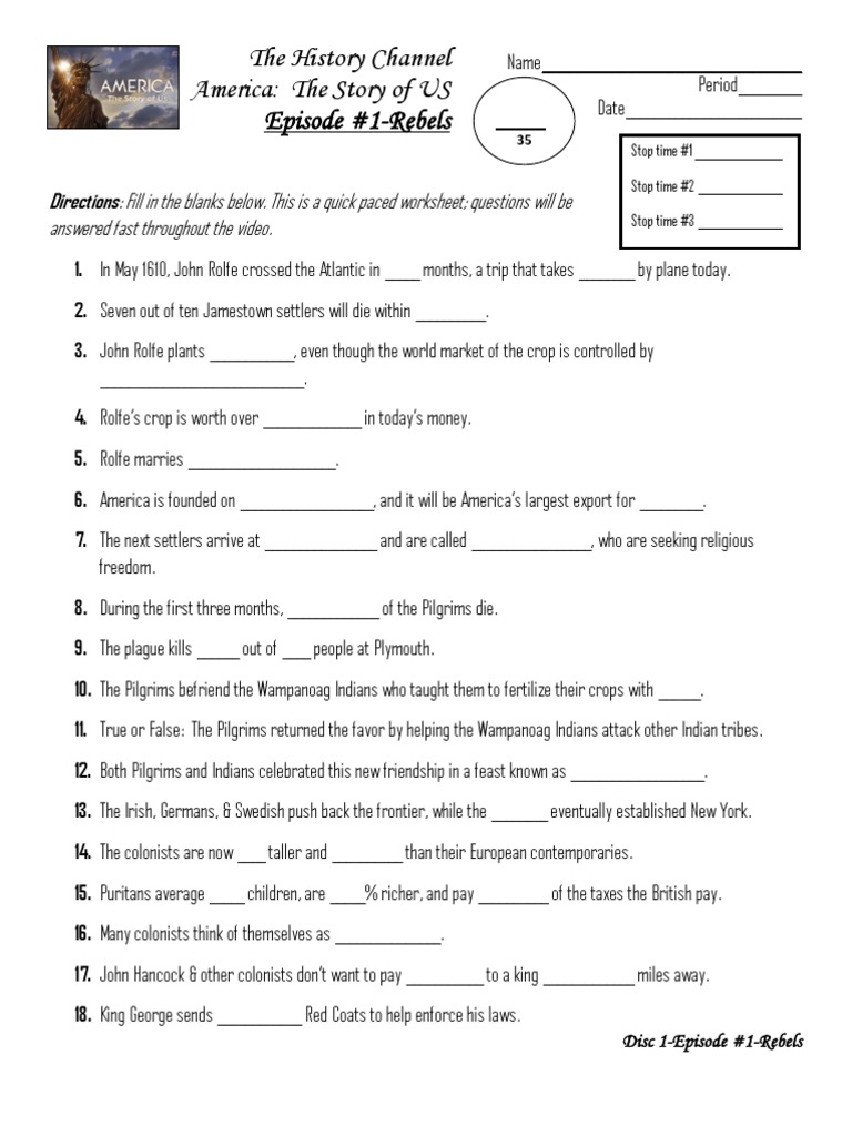 America The Story Of Us Rebels Worksheet - Questions will be answered fast throughout the video. Fill in the blanks below. In may 1610, john rolfe. This is a quick paced worksheet;
