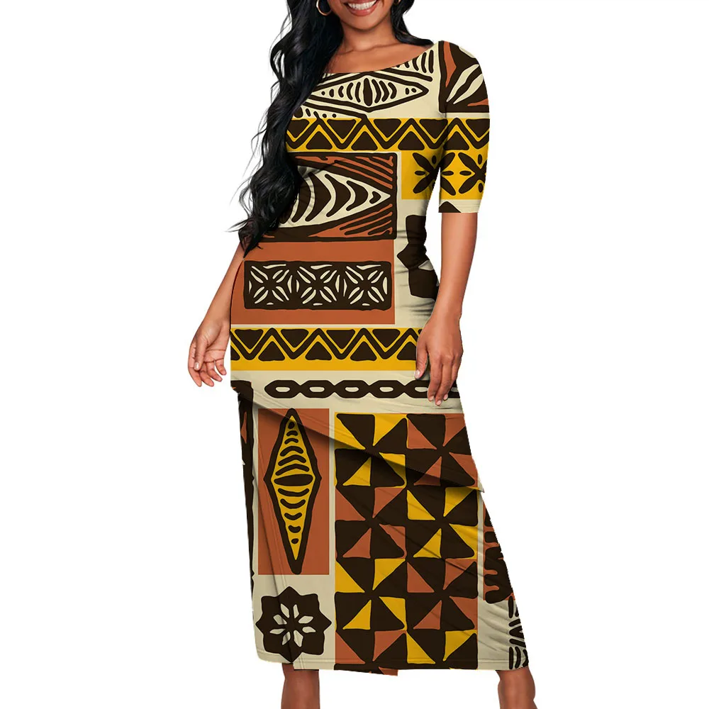 Oem Custom Polynesian Tribal Puletasi Samoan Dress Big Size Crew Neck