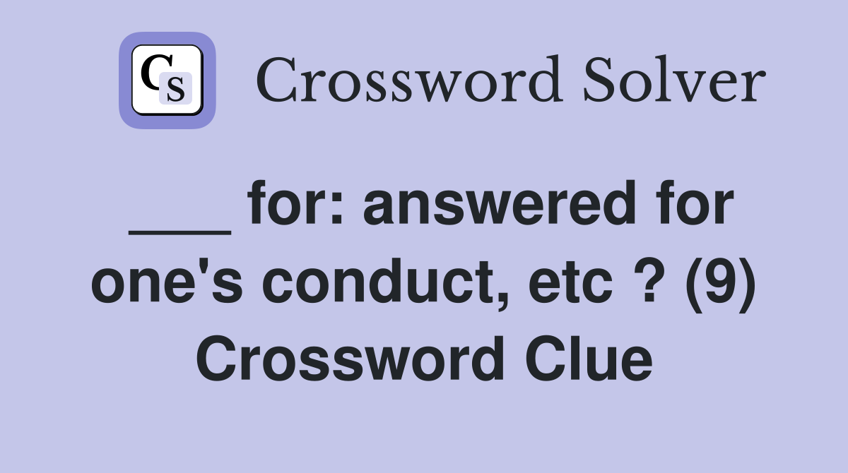 for answered for one's conduct, etc ? (9) Crossword Clue Answers