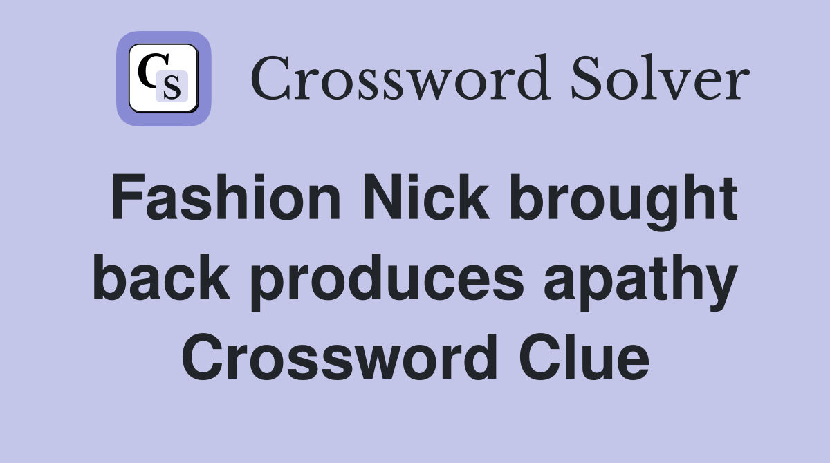 Fashion Nick brought back produces apathy Crossword Clue Answers