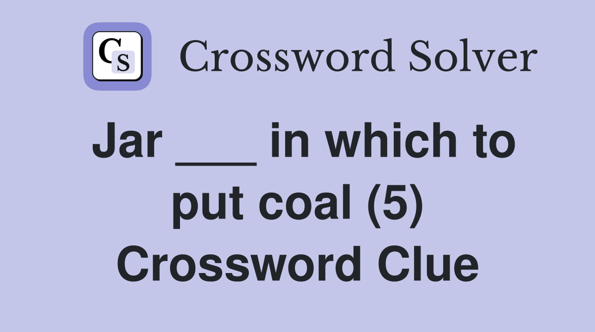 Jar ___ in which to put coal (5) Crossword Clue Answers Crossword
