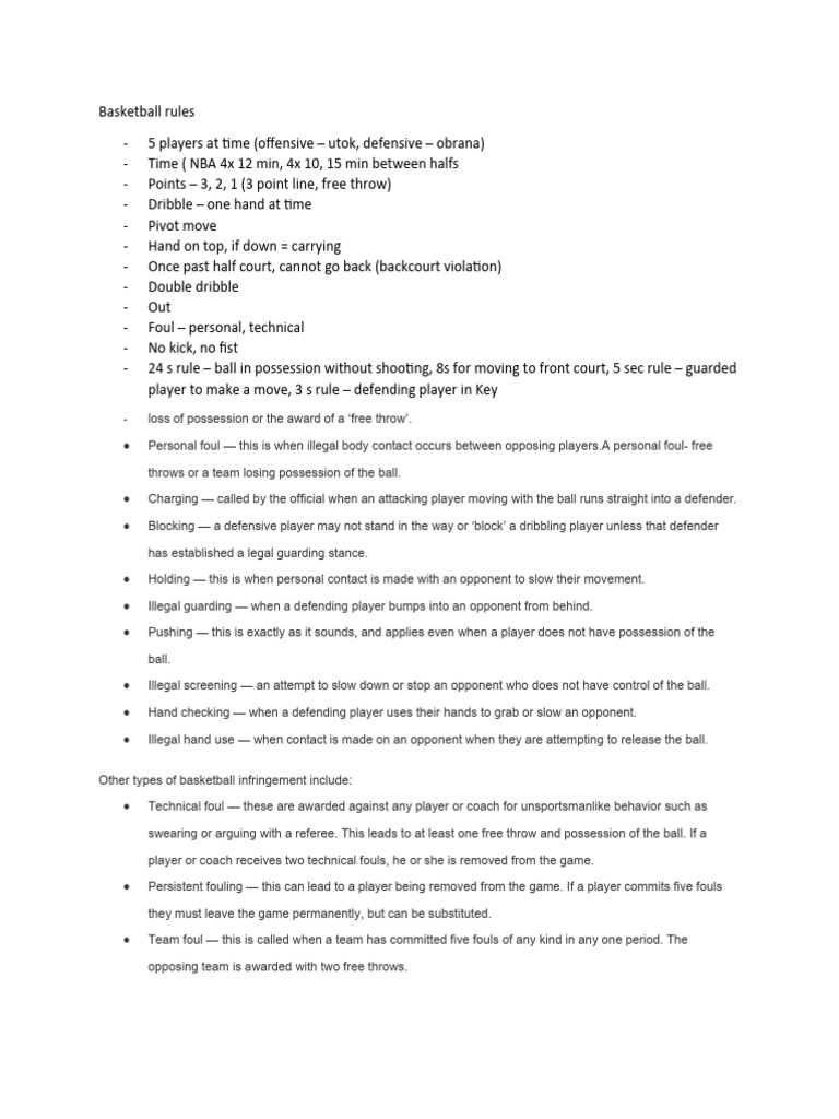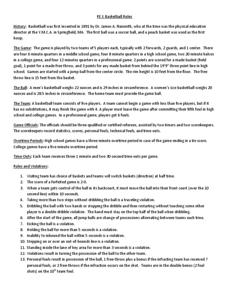 Basketball Rules PDF Indoor Sports Athletic Sports