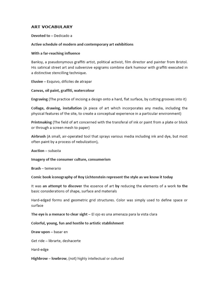 Students practice the past simple while they read the biography of an artist. Exercises focus on types of. Teaching important vocabulary of art thorough pictures, definitions. In this lesson, students learn vocabulary connected with art.