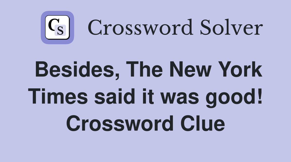 Besides, The New York Times said it was good! Crossword Clue Answers