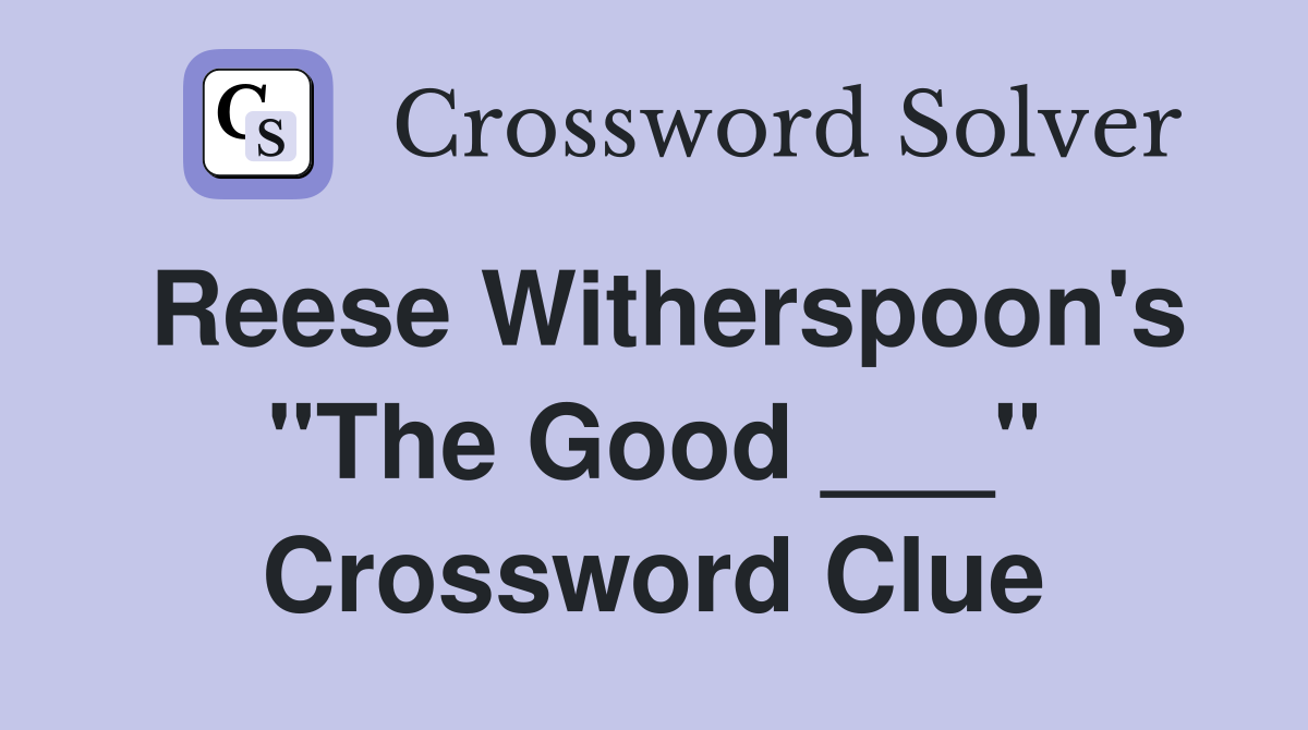 Reese Witherspoon's "The Good ___" Crossword Clue Answers Crossword