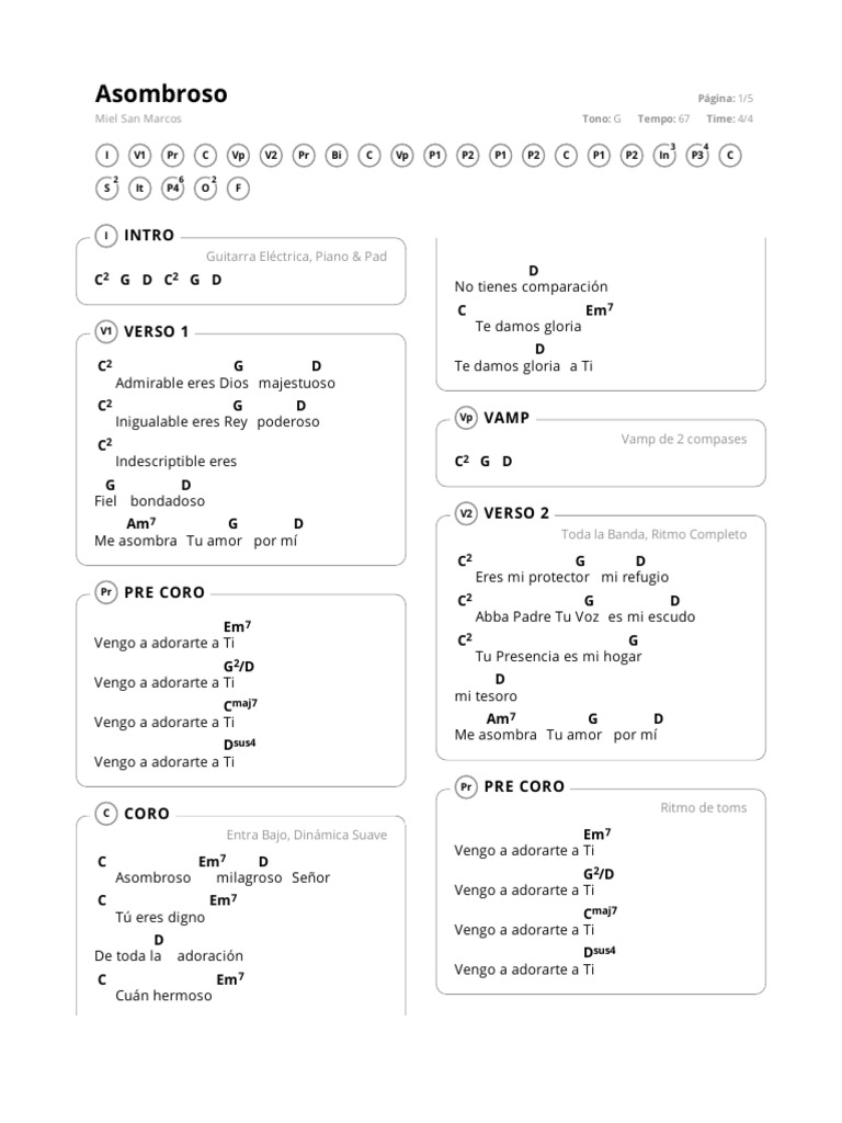 Acordes de asombroso, miel san marcos: Waleska morales & josh morales. Aprende a tocar esta canción. Cuán hermoso, no tienes comparación. Tú eres digno de toda la adoración. English translation of lyrics for asombroso by miel san marcos feat. Te damos gloria, te damos. Letra y acordes de guitarra.