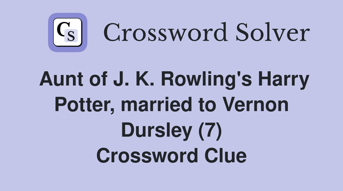 Aunt of J. K. Rowling's Harry Potter, married to Vernon Dursley (7