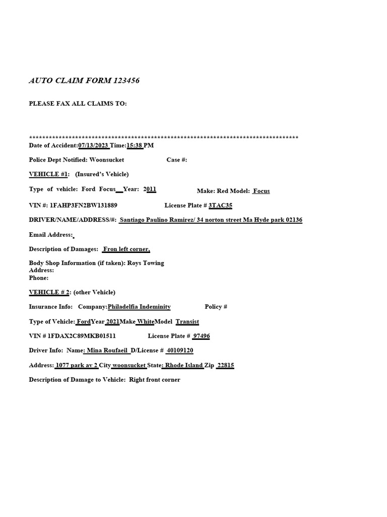 Auto Claim Form Sofia Fajardo PDF