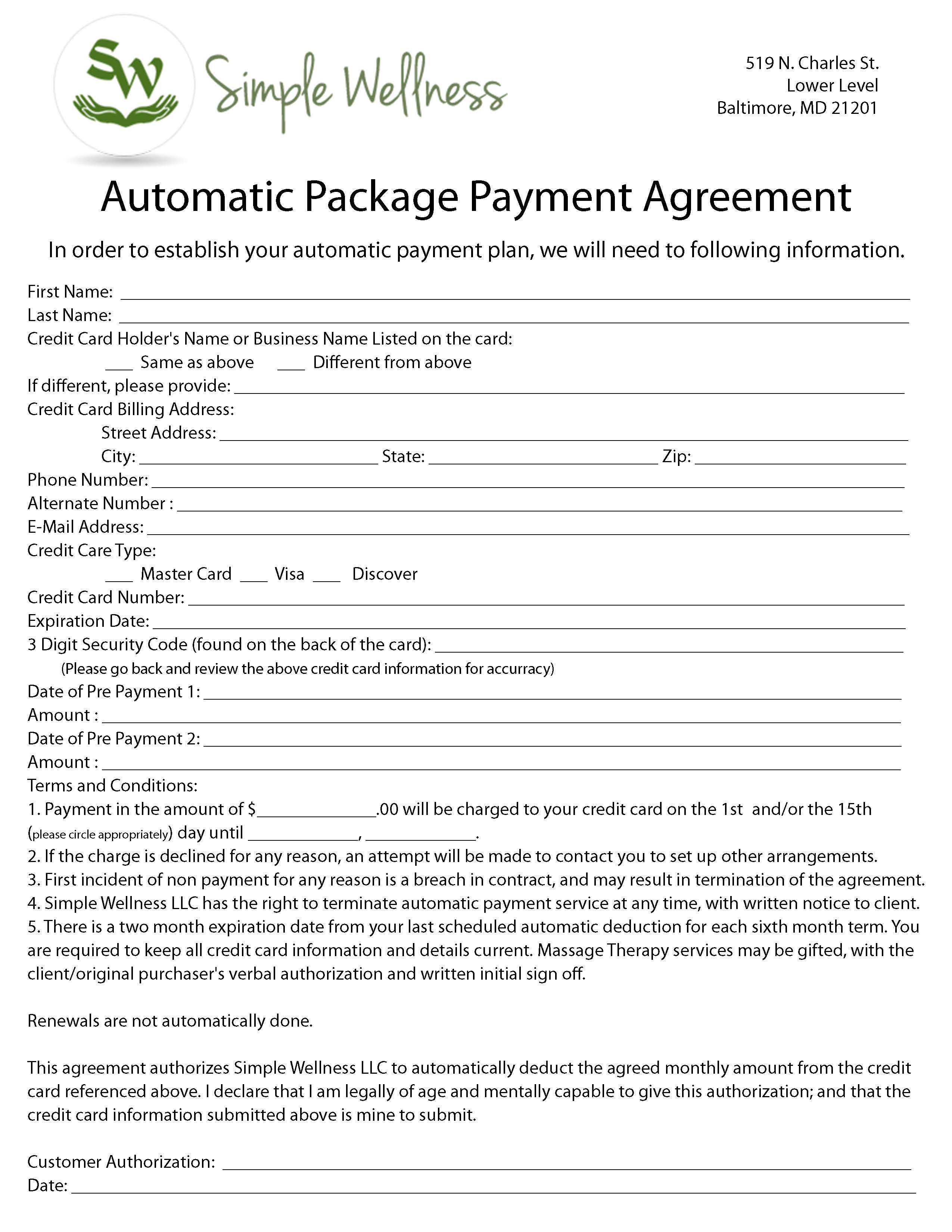 Automatic Payment Agreement Template