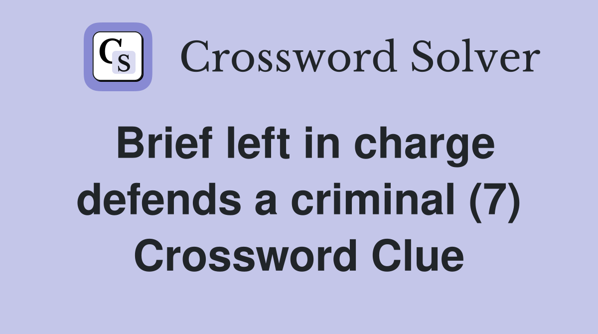 Brief left in charge defends a criminal (7) Crossword Clue Answers