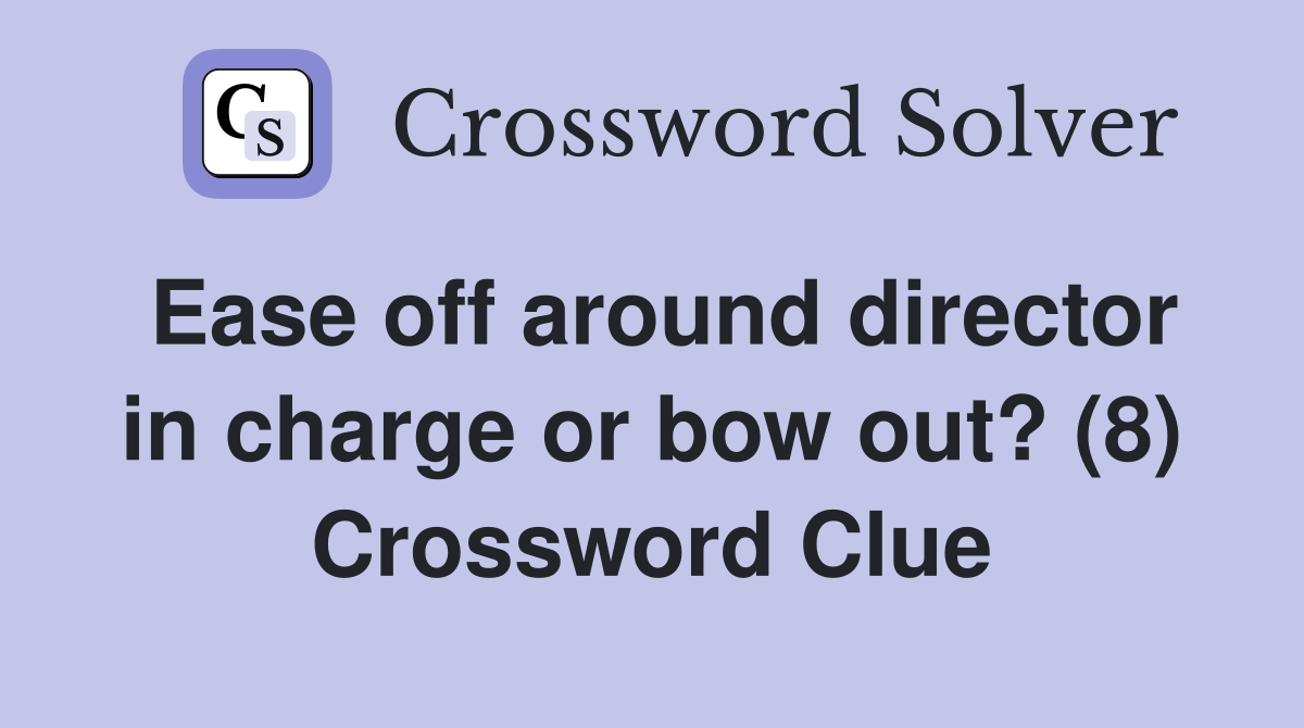 Ease off around director in charge or bow out? (8) Crossword Clue