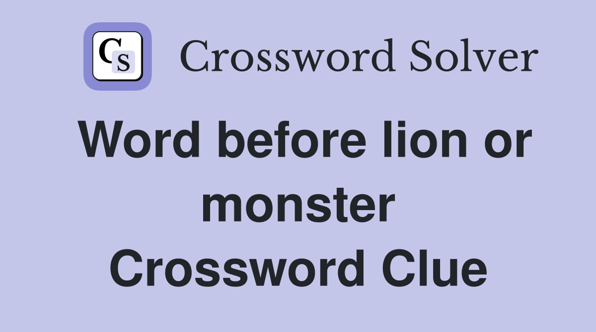 Word before lion or monster Crossword Clue Answers Crossword Solver