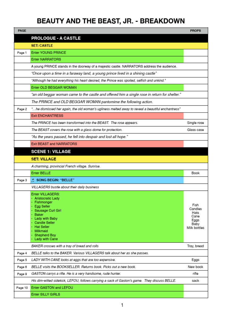 Beauty and The Beast, Jr. Script Breakdown PDF
