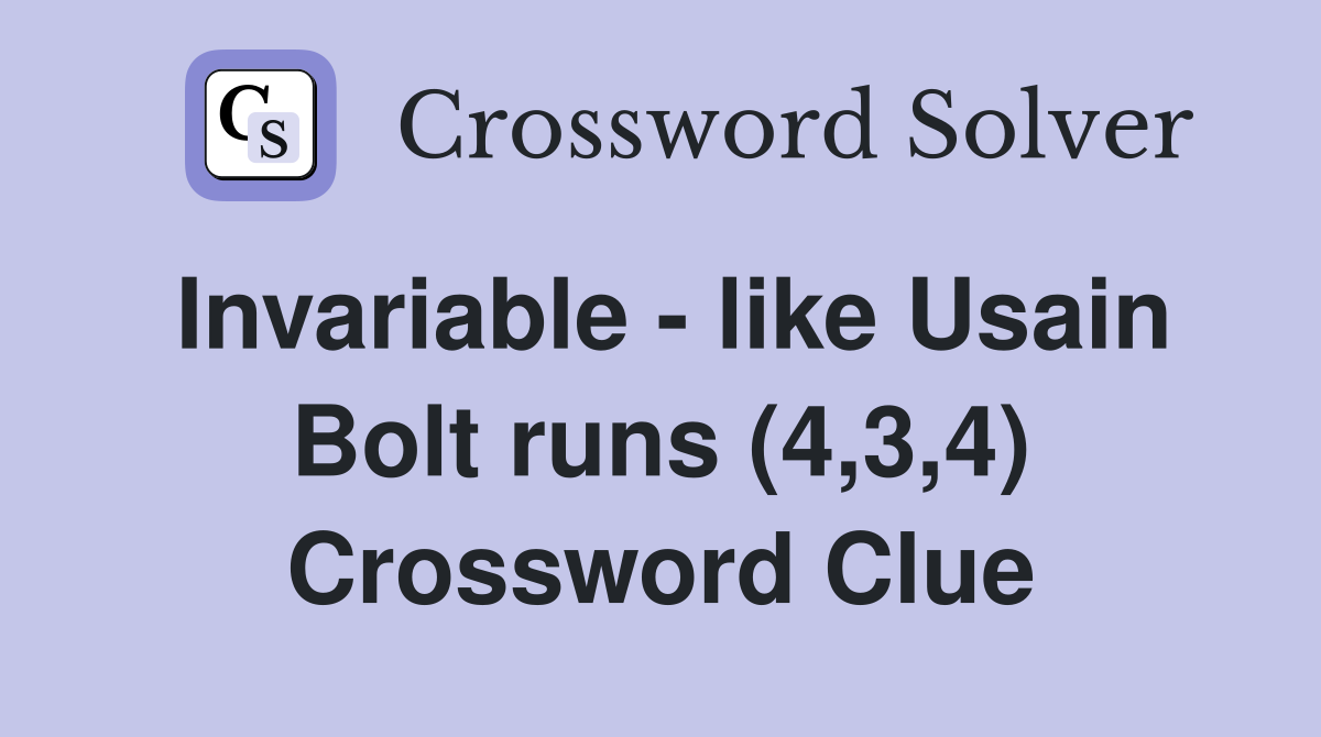 Invariable like Usain Bolt runs (4,3,4) Crossword Clue Answers
