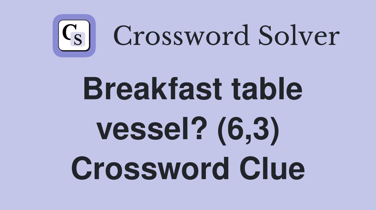 Breakfast table vessel? (6,3) Crossword Clue Answers Crossword Solver