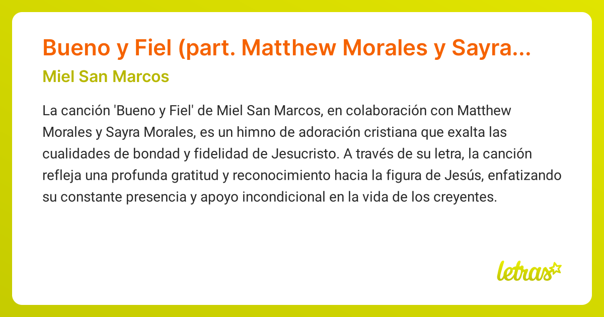 Letra y acordes de guitarra. Acordes de bueno y fiel, miel san marcos: English translation of lyrics for bueno y fiel by miel san marcos feat. Letra de bueno y fiel de miel san marcos, sayra morales, matthew morales.