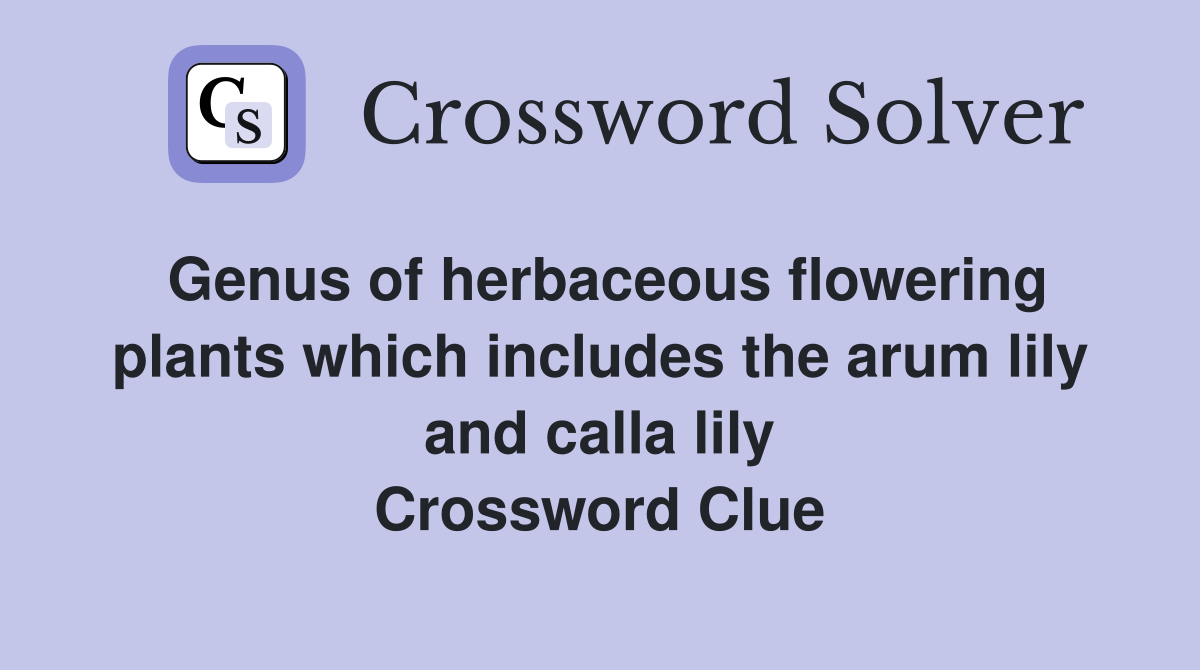 We have found 40 possible answers for this clue in our database. Enter the length or pattern for better results. The crossword solver finds answers to classic crosswords and cryptic crossword puzzles. The crossword solver found 30 answers to calla lily, 4 letters crossword clue. Among them, one solution stands out with a 98% match which has a length of.