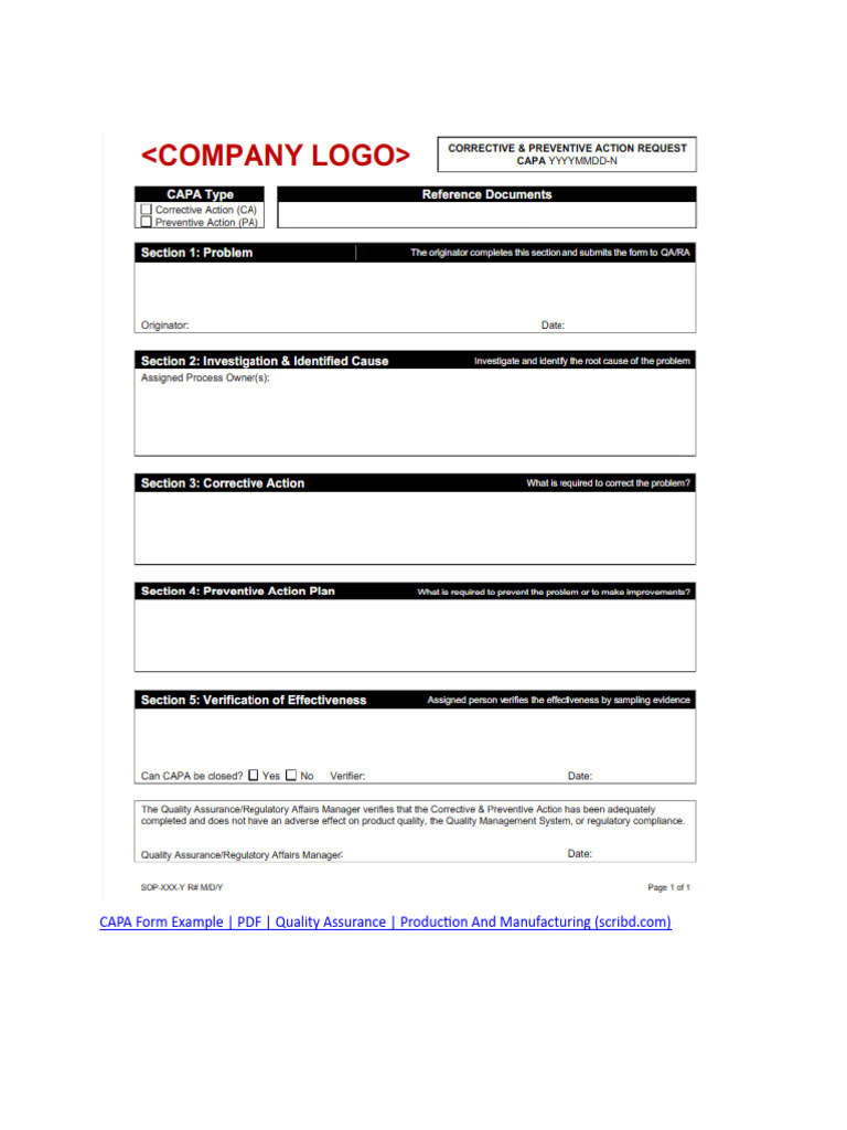 Sample Capa Form