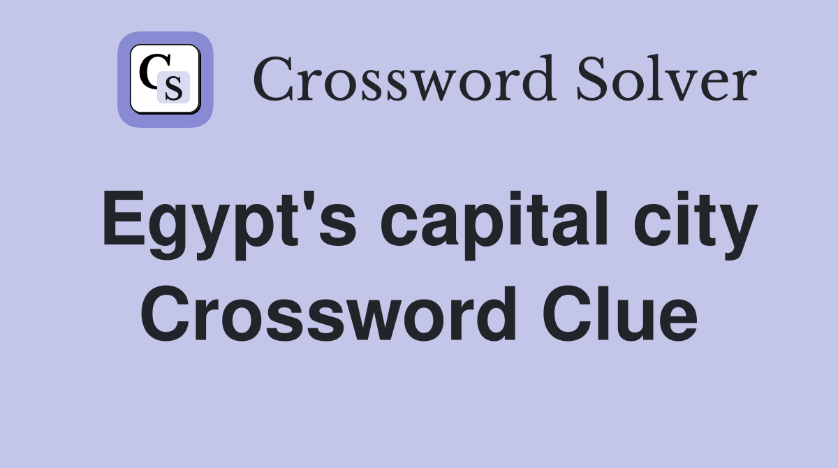 We have found 40 possible answers for this clue in our database. The crossword solver found 30 answers to egypt's capital, 5 letters crossword clue. Here is the answer for the crossword clue capital of egypt. The crossword solver finds answers to classic. Today's crossword puzzle clue is a quick one: