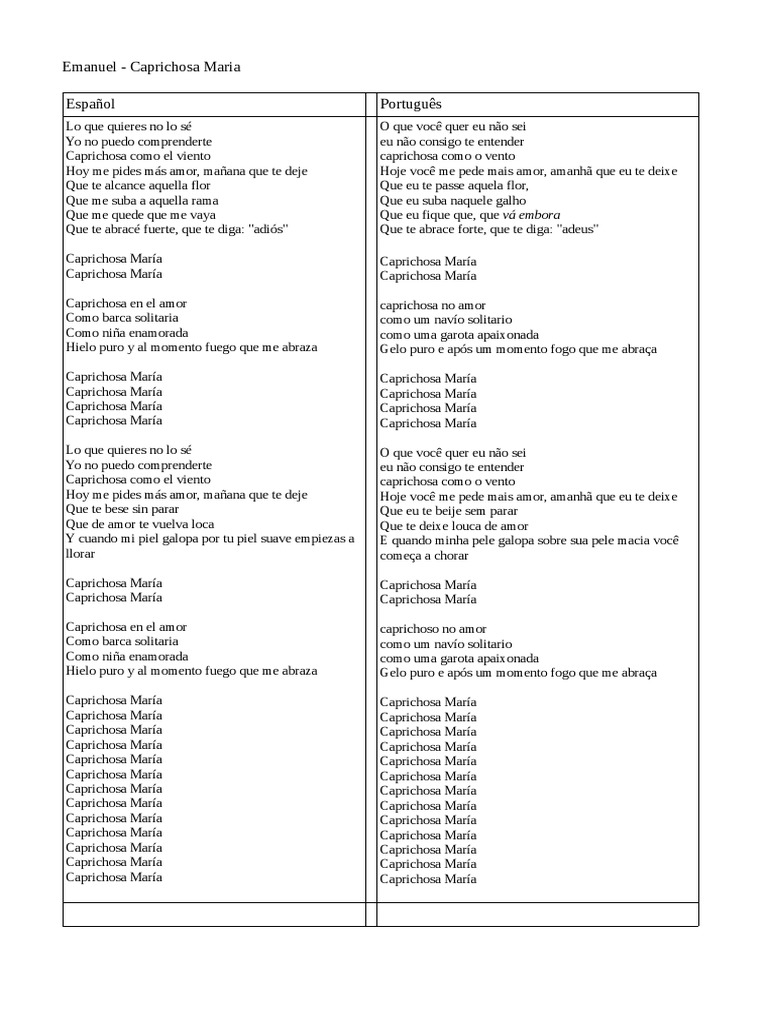 What Is Caprichosa In English WHTAISNA