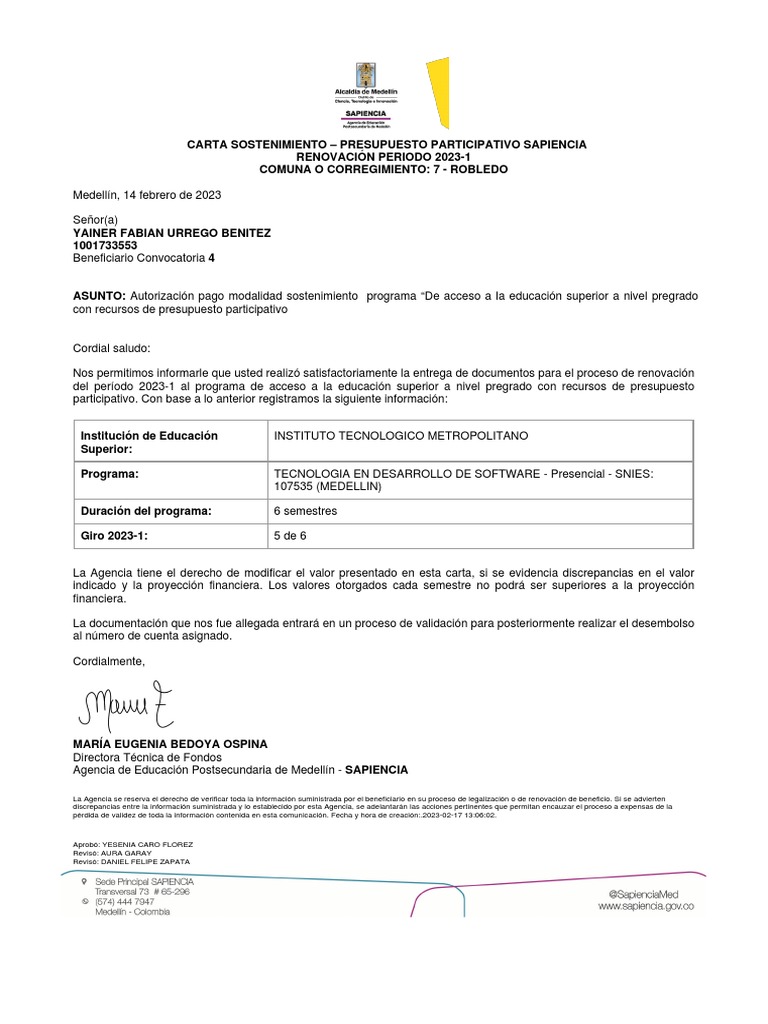 Muestra Carta Solicitud de Sostenimiento PDF