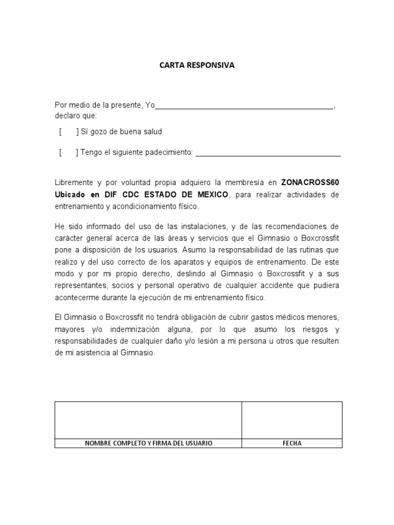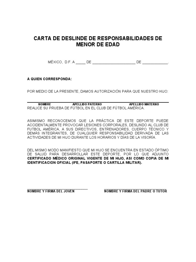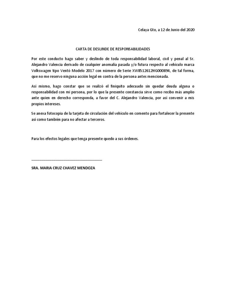 Carta De Deslinde De Responsabilidades Images and Photos finder