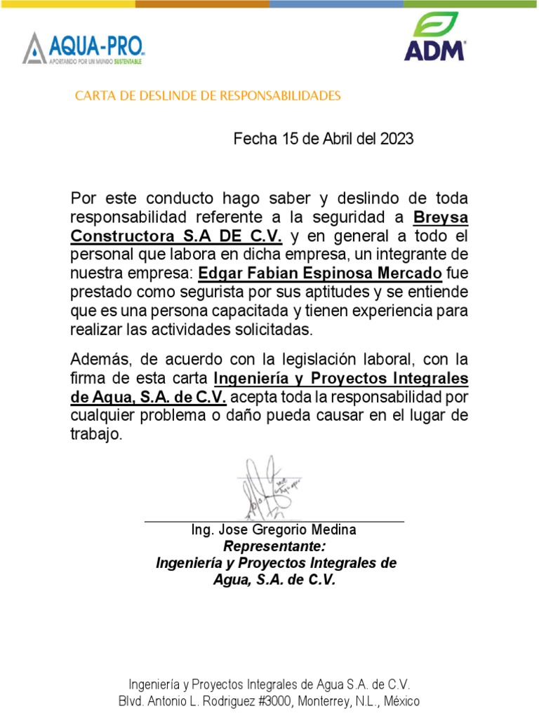 Carta Deslinde de Responsabilidad PDF