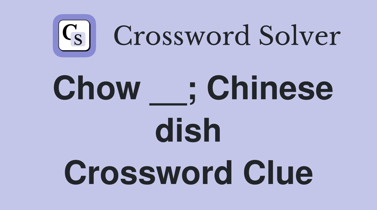 Chow __; Chinese dish Crossword Clue Answers Crossword Solver