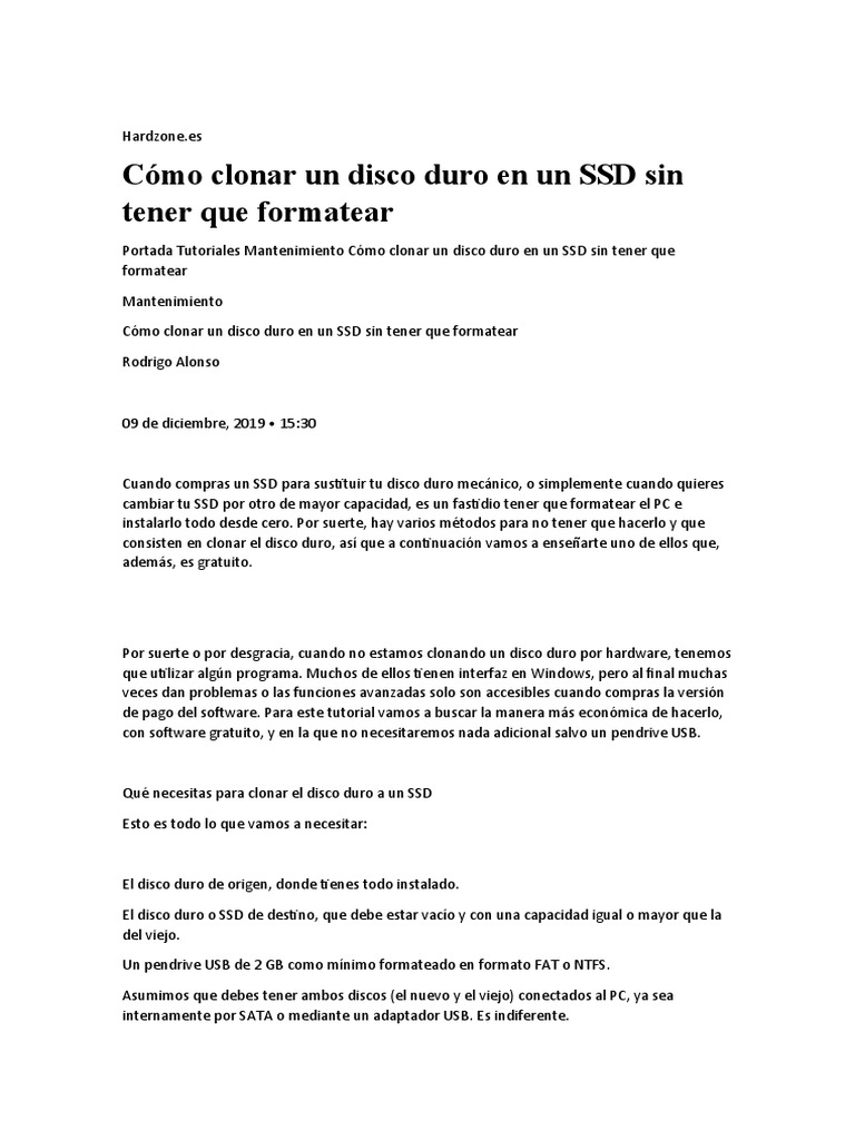 Cómo Clonar Un Disco Duro en Un SSD Sin Tener Que Formatear PDF