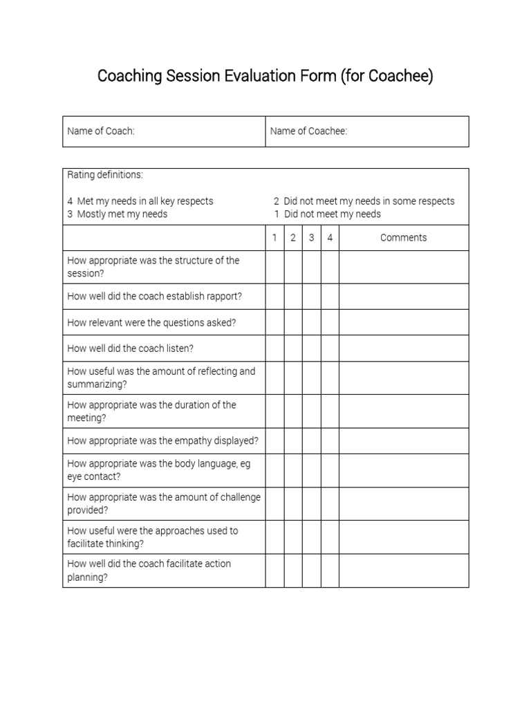 Coaching Evaluation Form (Coaching Session Evaluation Form For Coachee