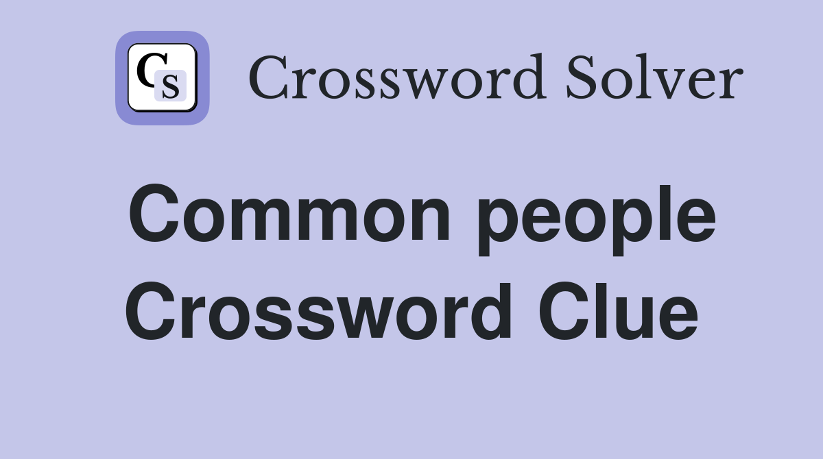 The crossword solver finds answers to classic crosswords and cryptic crossword puzzles. Search for crossword clues on crosswordsolver.com. There are related clues (shown below). Among them, one solution stands out with a 98% match which. Common people is a crossword puzzle clue that we have spotted over 20 times.