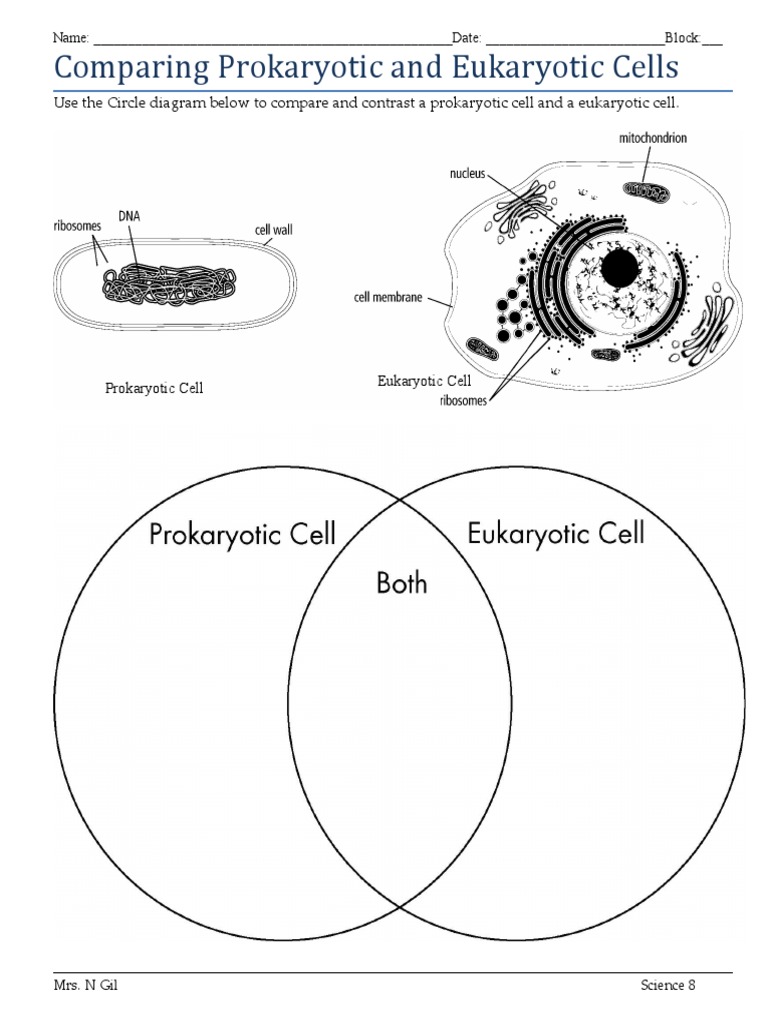 Prokaryotic And Eukaryotic Cells Worksheet Middle School Free